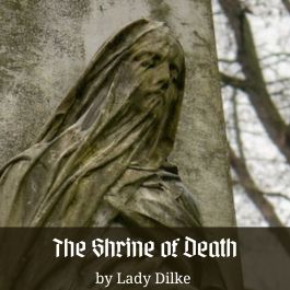 Then each terrible one re turned to his place, and the book which lay open before Death closed with a noise as of thunder, and the light which burnt before his shrine went out, so that all was darkness. In the morning, when that company which had brought her came back to the